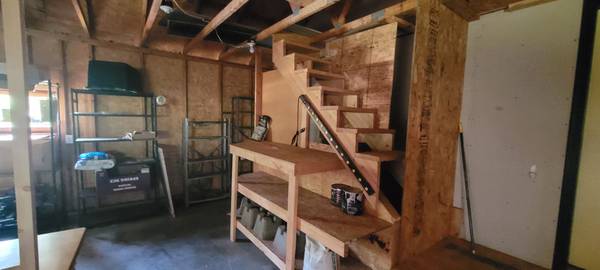 There is a large two stall garage attached to the home with plenty of storage and a work bench. A garage door opener is included.