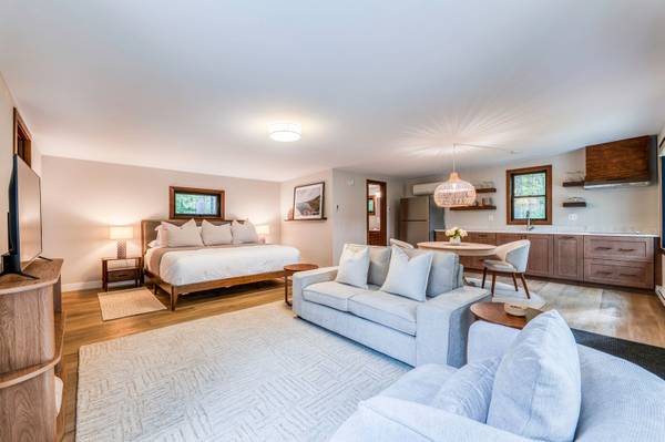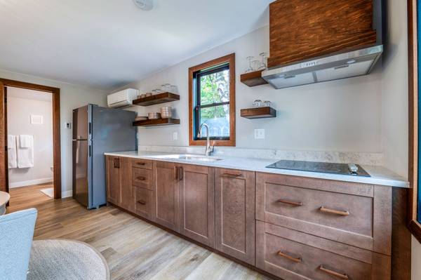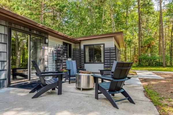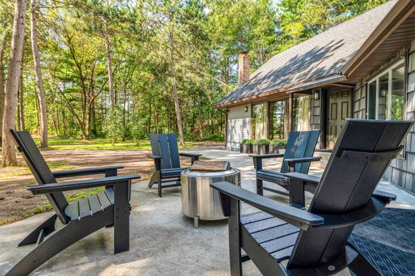 The kitchen at this home features beautiful wooden cabinets with updated appliances. There is a new fire ring in the front of the property with multiple chairs to enjoy the fall evenings.