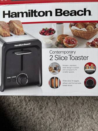 I have a brand new Hamilton-Beach 2-Slice Toaster. Used twice. I got the wrong color for my kitchen. Store won’t take it back. Wide slots for bagels, etc. Choose from 7 toast shades for lighter or darker toast. Modern, stainless steel design. Self-centering bread guides for easy toasting. $20. I will meet you in Bemidji for the sale.