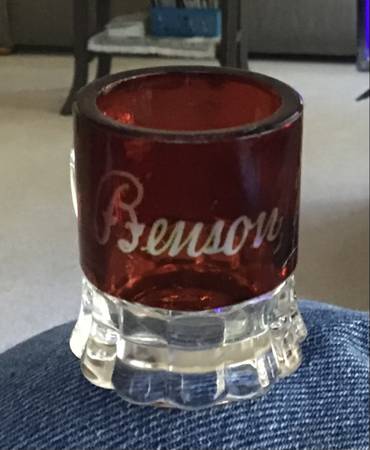 Up for sale today is this unique item from Benson, Minnesota. A very nice ruby red souvenir glass - tooth pick holder - with gloss!