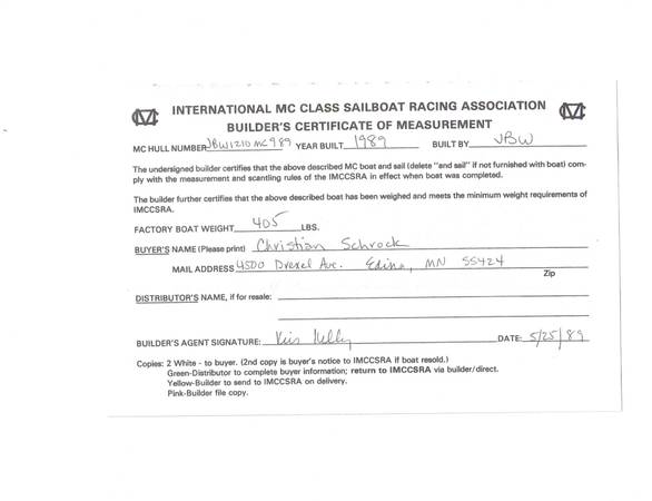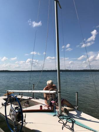 Original owner since 1989. Some repair invoices included. Stored wrapped under two covers. New sail only used 1 year. Old sail included as spare. All rigging in good condition. Has the trailer...