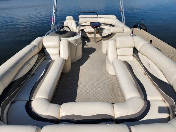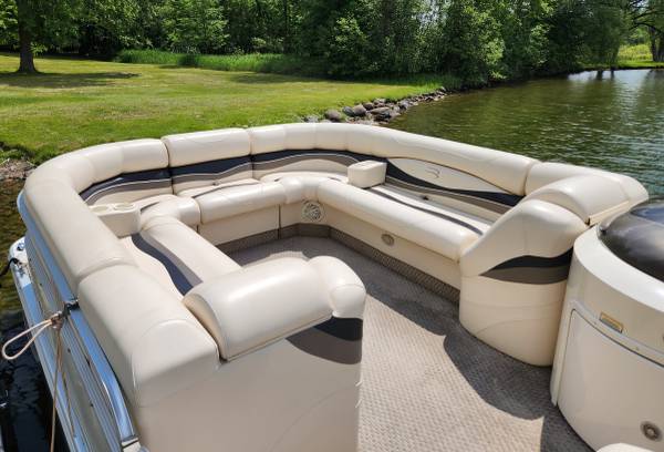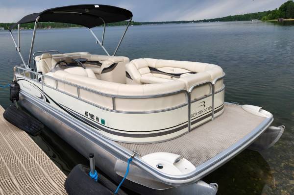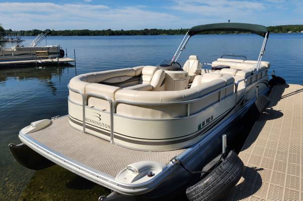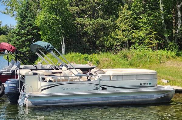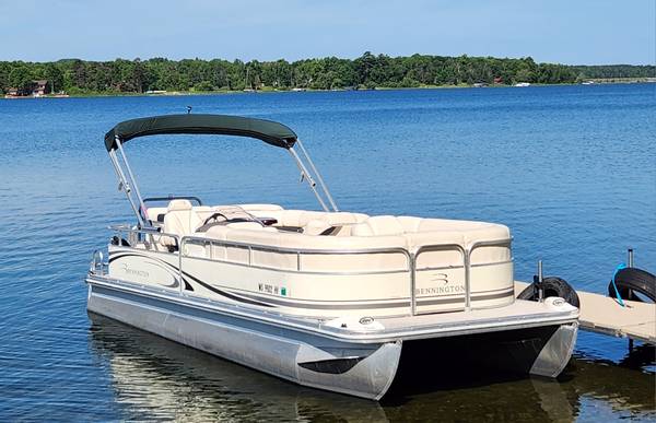 The price has been lowered by $3000 on this big Beautiful 22 ft 2007 BENNINTON REAR ENTRY CRUISER Pontoon Boat with a great running 2007 115 HP YAMAHA EFI 4-STROKE Motor on it that is in Excellent Condition overall inside and out for much less than half what a new one like this costs these days. This boat and motor has only 429 total hours on it since it was new. It has a strong and sturdy Tow Bar attached onto the back deck so it can easily pull multiple Tubers of any age, size and weight. The Maximum Capacity is 14 PERSONS and there is more than enough seating in it for this many people. It has a very good Captain's Chair, a very comfortable L-Shaped Lean Back Sofa in back and two more very nice Lean Back Sofas on each side in the front with a removal center Sofa section that can be placed right in the middle of the front to make a BIG U-Shaped Sofa... or it can be put in front of the side gate or else it can be taken out of the boat. All of the furniture is in very good condition so it is still very soft and supple. My right hand man installed a new Bluetooth Marine Stereo. The Bimini Top was replaced with a new powered Bimini Top last summer and it comes with a Made to Fit Snap On Mooring Cover that is in excellent condition. It has Rear Entry with a Swim Ladder attached onto the back deck. The deck is very solid because it was made with 3/4" marine grade plywood and the carpet is still in very good condition. It has the Extra Large Diameter Pontoons (25" wide) Bennington was well known for many years so it can carry more weight and people and can handle bigger motors. Both pontoons are in excellent condition. They have never leaked or had any repair work done on them. The railings are also in excellent condition all the way around. This boat was always kept on a covered boat lift and stored indoors during every off season... and that's obviously why it's still in such outstanding condition! It is registered in Minnesota until 2028 and I have a clear MN Title for it in my name.