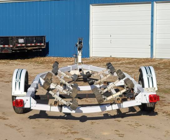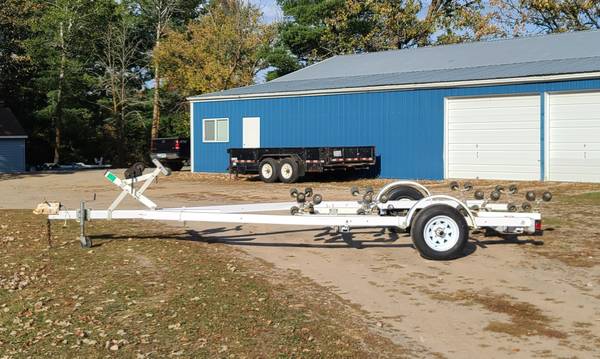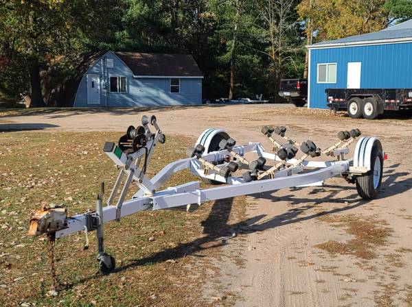 Road ready. Works with 18'-22' boats Measures 21' long and can be extended 2 more feet. 79" between the fenders. 4000lb axle 6 lug. New tires, all rollers are good. Title in hand. Price is firm.