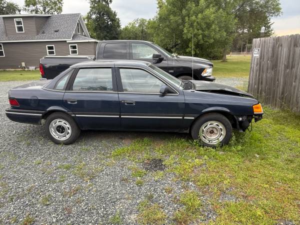 1989 Ford Tempo AWD, 2.3l, 48k miles, pw, pl, cruise, power seat belts. Pretty good shape besides the front damage. Transmission cooler did get hit so not drivable atm. Good tires. $1375,00 or offer/ my trade for another vehicle that has a title in your name.