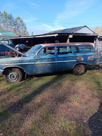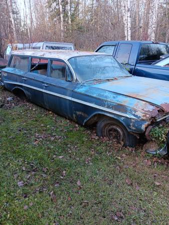 CAR IS LOCATED IN LITTLEFORK MN 1961 chevy station wagon, 283, automatic This is a good parts car. Derby car? Not running . Been sitting many years. Has lots of good parts. No title. 218 324-1five...