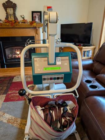 500 pound capacity. Comes with 2 size large slings (one is like new) and 2 rechargeable battery packs. Phone calls only. No text messages.