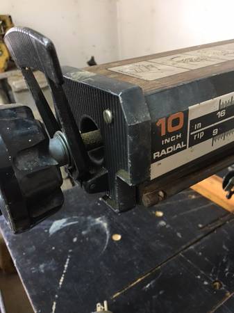 Sears radial arm saw in good working condition. 10 inch blade with built in light on flexible arm. Includes sturdy stand.