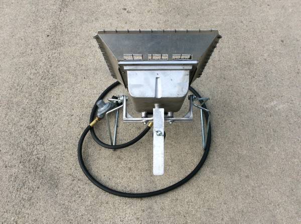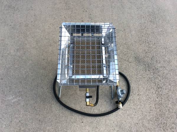 For Sale - Heat Plus Stainless Steel 15000 BTU Infrared Heater Fueled By Portable LP Gas Tanks, the Heat Process Heater offers quick spot heat for many needs, with the greatest of ease and portability. Unbelievable capacity for a small unit. Comes complete with regulator, tank fittings, six feet of rubber hose, folding legs. Plenty of heat for a few pennies an hour. Just a few of many uses: to thaw frozen pipes; to warm car and airplane engines; in home construction or repair, to speed drying; temporary heat for unheated areas such as workshops or garages; on the farm to heat barn areas, silos, milk houses and watering troughs, ice fish houses and unit folds down for cook top. Like Brand New $75.00