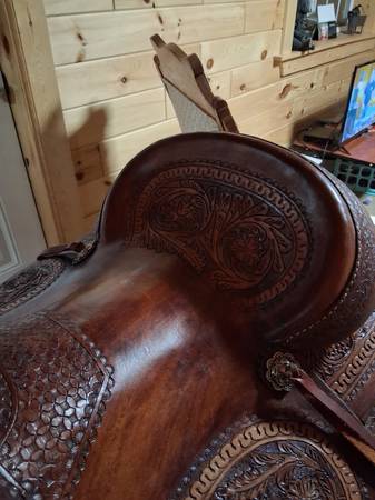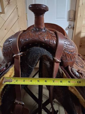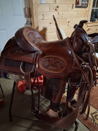 16 inch draft saddle the brand is The Tin Cactus. Comes in a complete set has pulling breast collar and draft bridle. This a very beautiful saddle asking $1500 firm. Location Huntersville MN. PLEASE CALL ONLY Two one eight seven six six 2386
