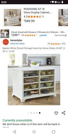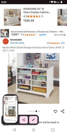 New inbox, and never been opened. 10 drawers on one side, and six shelves on the other. Beautiful island, just no space for it and current house. Located in fosston MN. Open to offers