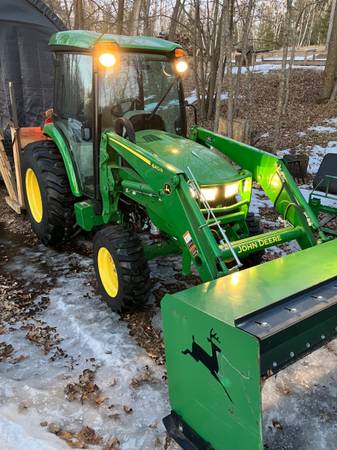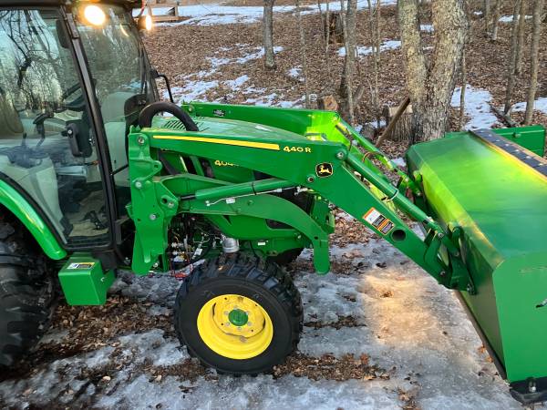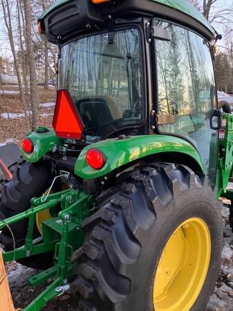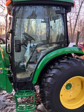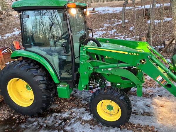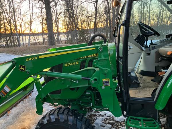 2023 John Deere 4044R tractor with less than 55 hours. Cab and loader.