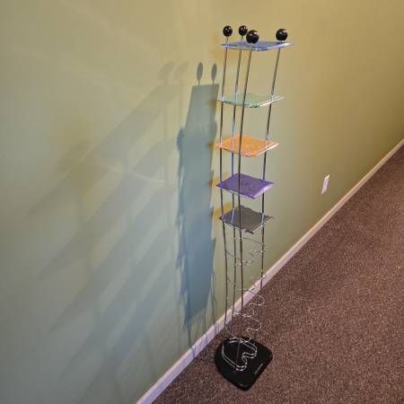 Tall Storage Rack for CD's or anything. Can hold 100's of CD's. Could be used in a corner with small plants, or hold stuffies! 51" tall, base is approx. 9" x 9".