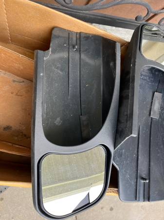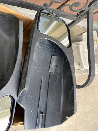 Nice extended towing mirrors . Used on 2007 Tahoe. Right side does have a chip on it but still usable. Left side perfect