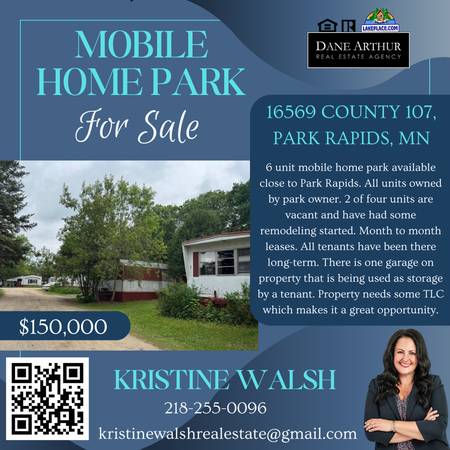 6 unit mobile home park available close to Park Rapids. All units owned by park owner. 2 of four units are vacant and have had some remodeling started. Month to month leases. All tenants have been there long-term. There is one garage on property that is being used as storage by a tenant. Property needs some TLC which makes it a great opportunity. MLS #6731762.