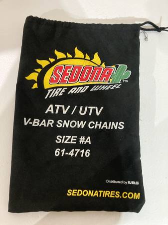 ATV tire chain's - set of four new in bag SEDONA Size A tire chains fit 23" or larger with extension links Half the price of new ($112) plus 4 rubber straps $50
