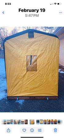 Used 5x8 Heavy Duty canvas Used only a few times Great condition Treated floor $200 cash only Will meet in blackduck