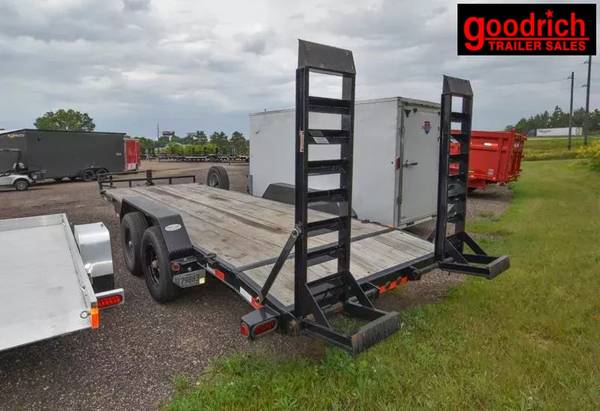 STOCK #25436A 7000# Axles 16" Tires Electric Brakes 2 5/16" Coupler Stand-Up Ramps Treated Wood Deck 2' Dovetail 7 Wire Electrical Connector 83" X 18'+2' Dove GVWR 14000# Price,...